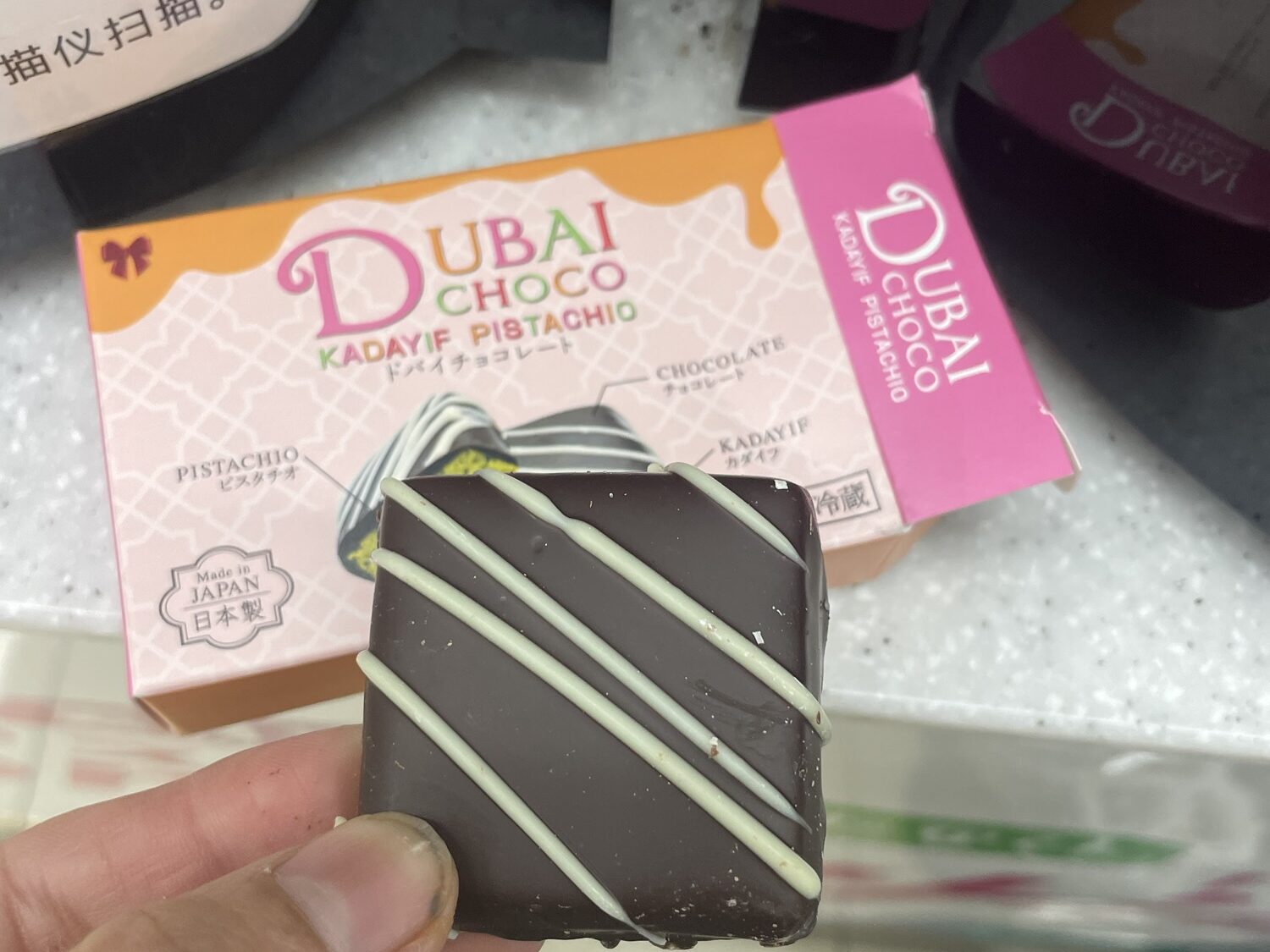 - セブンイレブンで買えるドバイチョコ「Dubai Choco Kadayif Pistachio(ドバイチョコ カダイフピスタチオ)」
