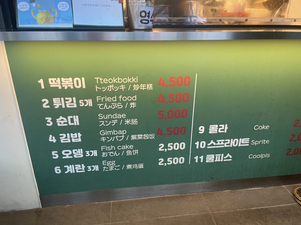 • 値段の目安はトッポギ1人前W4,500
