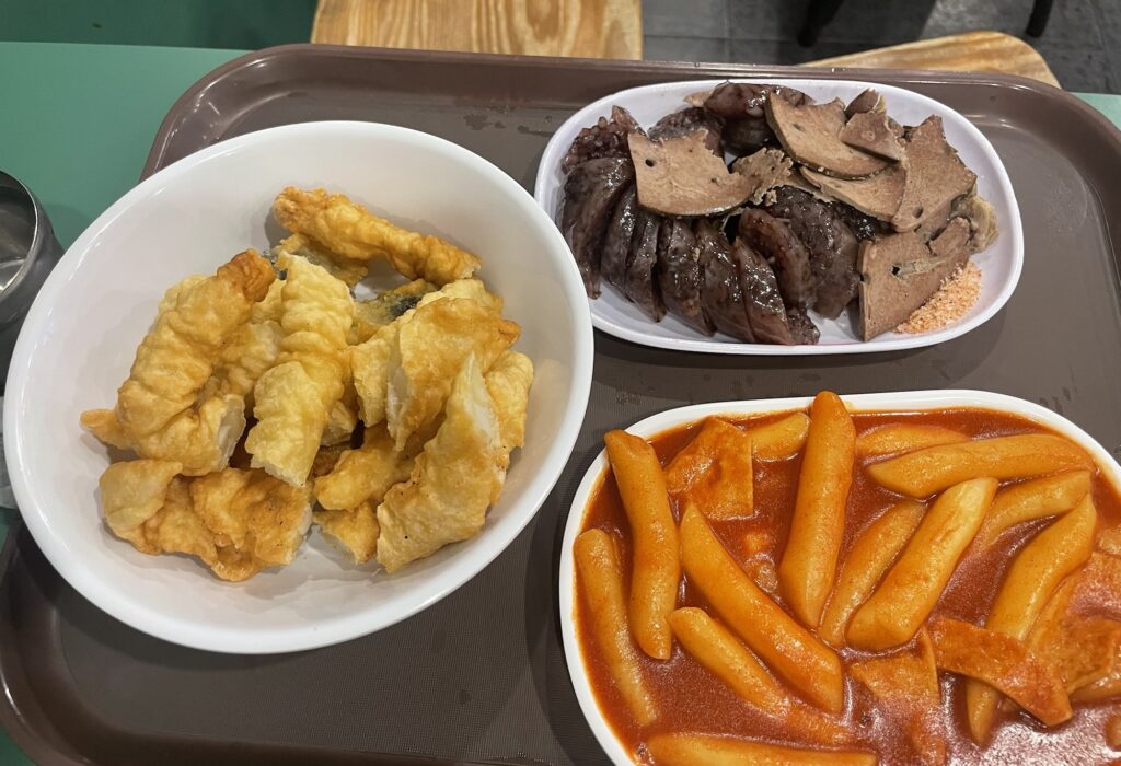 「スンデ」は春雨や野菜を詰めた韓国式ソーセージ。見た目はちょっと不安になるけど笑、モチモチ感触で意外と脂っこくない。