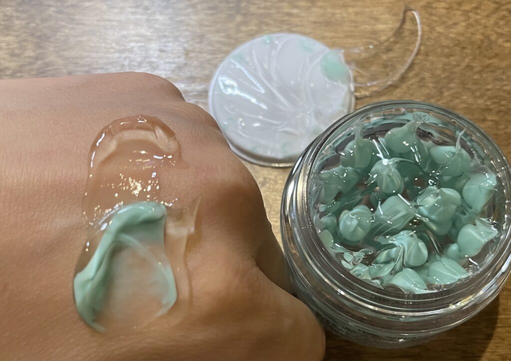 また、PDRNカプセルクリームは、緑のツブツブ(カプセル)と透明ジェルをどう混ぜるかで仕上がりが全然違うスキンケアです。