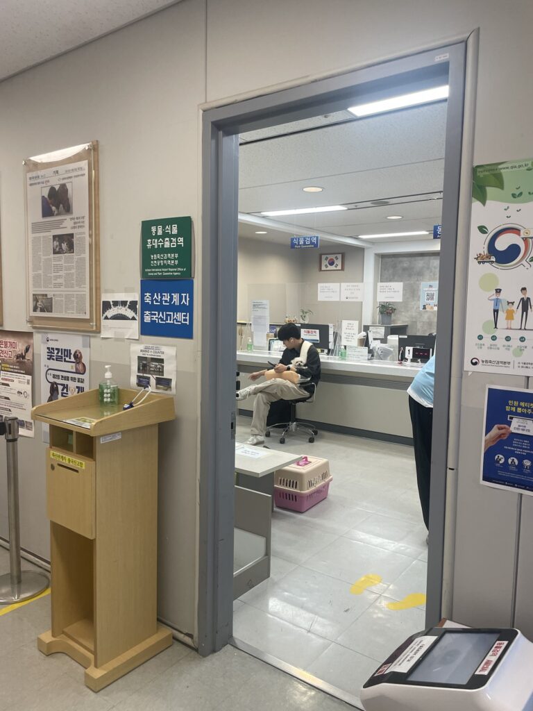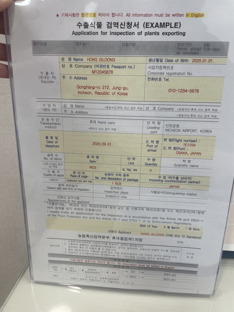 - STEP1ステップ1仁川空港の出発ロビーにある「動植物携帯輸出検疫室」で米を見せて書類を書く