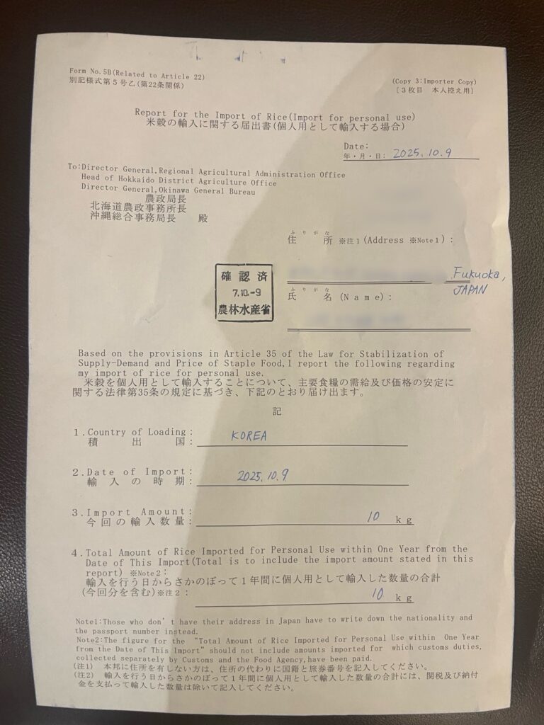 - 韓国から日本へのお米の持ち込みは、カンタンな手続きで可能!